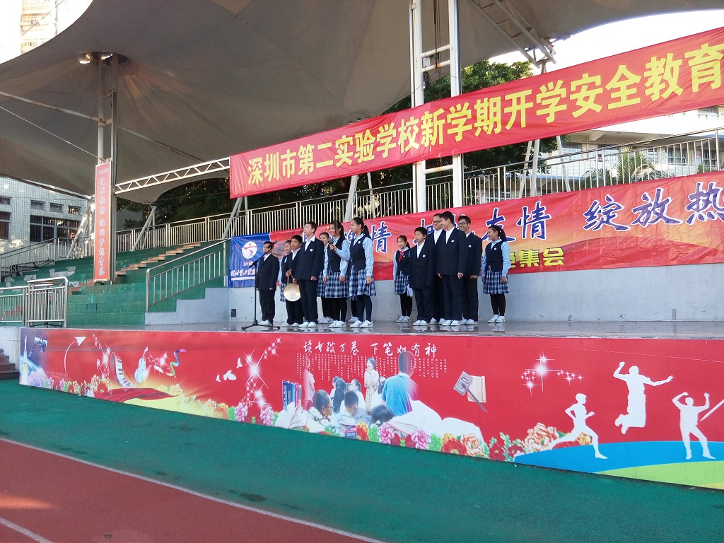 本周是学校安全教育周,周一升旗仪式上,我们年级的安全教育进行了新的尝试,与文明礼仪教育和年级风采展示相结合,用文艺节目的形式来表达我们的主题“安全第一健康成长”。由初一(12)班表演了“三句半”《红色年级新风貌》。